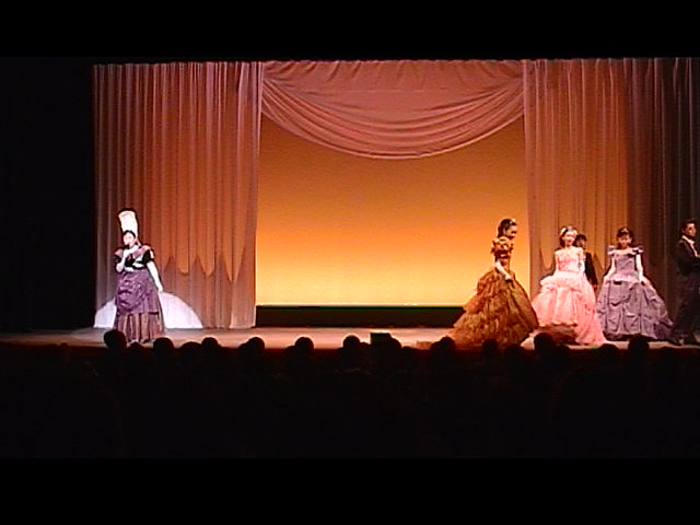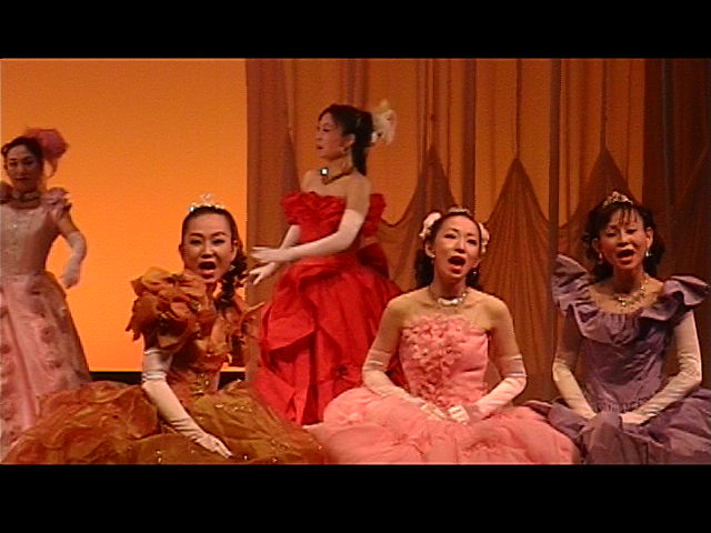 西洋の宮廷へ。美しくもはかない若き恋を女王が歌う。ドレスの淑女と燕尾の紳士達も美しく