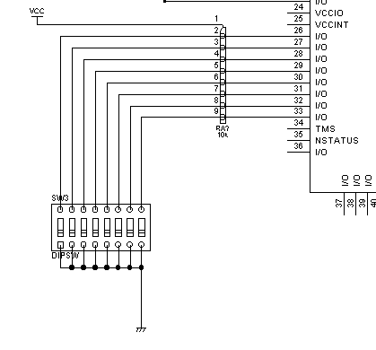 とりあえずDIPSWから、BIT0からBIT7まで33番ピンから26番ピンまでで配線しました。