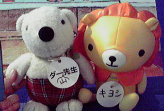 | ガリ勉(?)なマサフミ君 | アホアホなケンスケ君と臨時講師(?)のキャッツ先生。後ろは写真です。 |