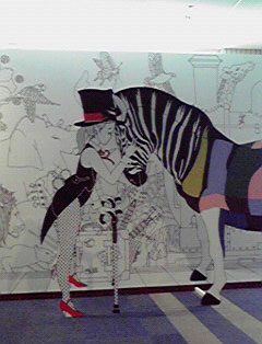 ステージは何でしょうあれは?文化会館の幕みたいに横に五線譜みたいな波上の物体があって、