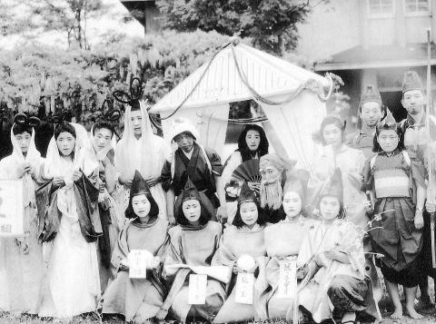 ■ 校歌は今でもそらで歌えます「(校歌は)すっかり頭に入ってね、今でもそらで歌えますよ。たいへん愛着のあるいい校歌ですね」 これは、函館東高放送部製作、平成18年度第53回NHK杯高校放送コンテストラジオドキュメント部門全道大会出場作品『思い出のよすがに(6分53秒)』で語られた東高第1回生の俵浩治先生(78)の言葉である。 「校歌に対する思いは、教員として長く(33年間)過ごしたのが大きいですね」 1950(昭和25)年、アメリカ占領下、GHQの占領軍命令で大学区制男女別教育から小学区生男女共学が強行された。俵浩治先生は当時北海道道立函館高等学校(現函館中部高)に通っていたが、このため函館東高に3年生で編入になった。 1951(昭和26)年2月7日に生徒より公募で作詞された新校歌が披露された。その1ヶ月足らずの翌月3月1日に、函館東高第1回卒業式を迎えている。 「函中(かんちゅう現・中部高)から一緒に最後の1年間東高に来た同期の厚谷悌二君が作詞しました。仲間が作った校歌ということで特別な気持ちがあります」。 ■ 3高生徒のわだかまり解消、きっかけは運動会 「急に統合になったから、函中、市中生に反目ということまではいかなかったけれど、どこかにお互いに馴染めない感じが漂ってましたね。でも、運動会をきっかけにわだかかまりが解消されました。どうしても協力しなければならなかったからです」と当時を述懐する。右写真は6月11日の運動会での仮装。先生のV年E組はかぐや姫を演じた。 「後で聞くと、何組も同級生同志のカップルが誕生することになったのですね。東高はその後もずいぶんカップルが多いみたいです。これは東高の特徴で、市中として始まって以来のああいうキャンパスや教育方針がそうなったと思います」。 ●【男女共学】 「男女7歳にして席を同じにすべからず」の時代から男女共学への変革は大きかったようだ。新制度発足後の1950(昭和25)年4月20日女生徒身体検査の時には男子が臨休となり、翌日20日男子身体検査の時には女子が臨休となった。1957(昭和27)年12月9日、全校生徒に対し、校長より男女交際について特別訓話があった。函館東高50年史沿革略年表にはそんな歴史が綴られている。 昭和25年の函館東高の先生による報告書によれば、「.学力面:男女とも異性に対する一種の羞恥心から勉学に励むようになった。ことに女子は従来の別学では一般に男子より程度が低いという不満があったが、それが除かれて非常に活気を呈してきた。学習態度が極めて良好でことに静粛な為、学習効果が増してきた事は著しい」と記されている。 当時の様子については、当ホームページの東高誕生の2年福田芳子さんの雑感、昭和25年の報告書「共学についての報告を参照。 ●【3校合同同期会】 1982(昭和57)年から今日まで函館三高高校合同同期会が行われている。ある日突然、市内4高を3高に統合して小学区制男女共学が実施され、市内の普通高の生徒達は地域ごとに東高、中部高、西高の3高へばらばらにさせられた。(詳細は当ホームページ「市内高校統合案を阻止した人々―戦後にもあった統合問題―参照) その時の高校生は一同に集まり、函館と東京で今もなお同期会を年1回実施している。 2001(平成13)年9月22日、第20回の同期会が函館のホテル・ロイヤル柏木で開催され、東高28人、中部高30人、西高24人の合計82人が参加している。その時の東高1回生の集合写真と名簿を函館東高第1回生写真集の中に収めた。 ■ 自由な選択性のあるカリキュラム 発足当時、幅広い自由で選択性のあるカリキュラムだった。「私が(東高の)教員になった時(1958年)には基本的な教科はクラス単位で受けていた」が、東高発足当時、時間割も制度も学生一人ひとり違っていた。英語、国語、数学もクラス内でも別々な先生に習っていたという。「今じゃ考えられない、革新的で大胆なカリキュラムを先生方は考えていたのですね」と先生は入学当時のことを回想する。 「初代岡村威儀校長先生は、とにかく伝統的な型にはまった学校にしたくなかったのです。非常に優秀な先生方を集めたという話は有名です」 当時は校長先生の考えでスタッフを集めていた。函館市立中学(現函館東)の教諭第1号は井上一先生だった。「1932(昭和8)年3月、小林多喜二労農葬準備中逮捕されるが、7月起訴猶予で釈放される」(井上一先生追悼集「開けない夜はない」)という経歴の人物である。後に井上先生はレットパージにより学校から追放された。(詳細は「函館市立中教員第1号の井上一先生に辞職勧告?!」を参照) ■ 教頭先生が大学にスカウトに 市立函館中の時代から良い先生を見つけるべく、大学に行って「これはとういう学生をスカウトして見つけてくる」という伝統があった。その頃、校長に教師を採用する権限があったようだ。 俵先生もそのスカウトされた学生のひとりだった。 1958(昭和33)年、函館東高から四ツ柳忠夫教頭先生(数学、昭和18年3月31日就任、昭和38年4月30日退任)が札幌の北大まで先生をスカウトに