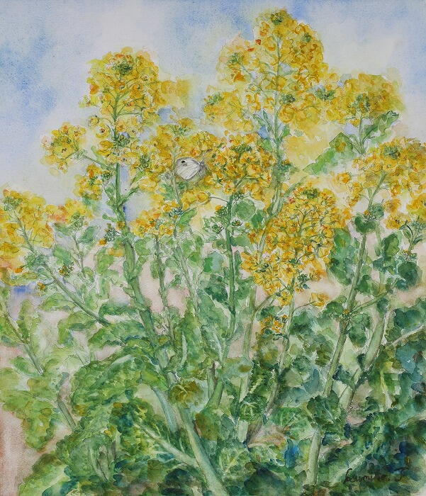 | 黄色一色の菜の花のアクセントであるモンシロチョウがあまり目立ちません。もう1匹空に舞い上がらせてはどうでしょうか。アクセントは目立つからアクセントなのです。(掲載H28.4.29) |
